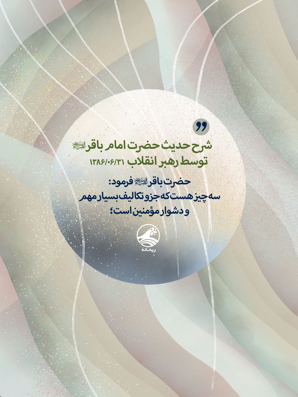 «حضرت باقر سلام الله علیه فرمود سه چیز هست که جزو تکالیف بسیار مهم و دشوار مؤمنین است: