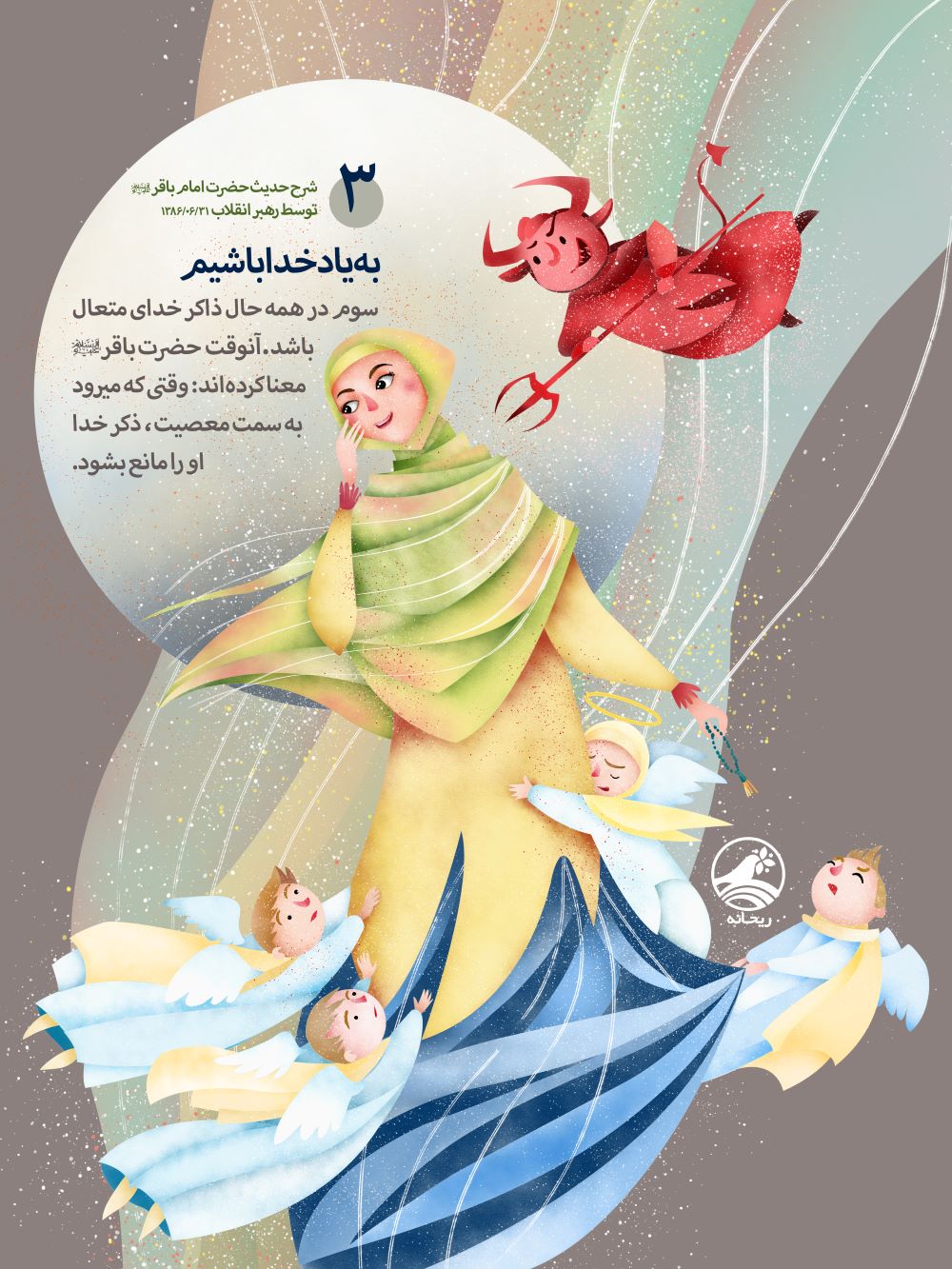سوم در همه حال ذاکر خدای متعال باشد. آنوقت حضرت باقر ذکر را معنا کردهاند: «وقتی که میرود به سمت معصیت، ذکر خدا او را مانع بشود.»